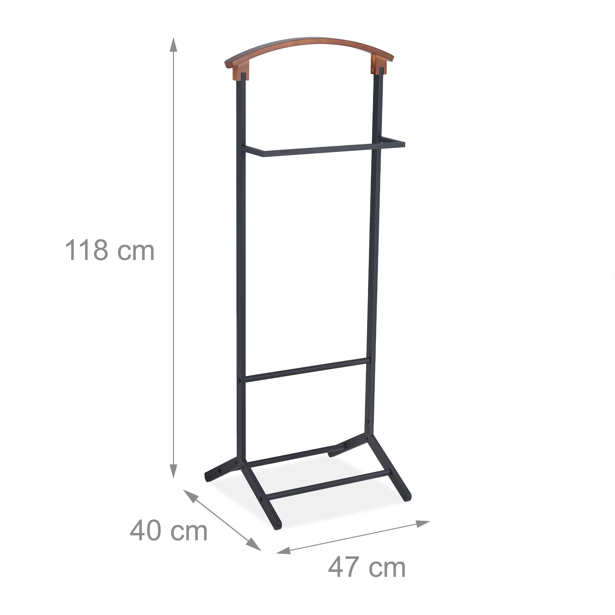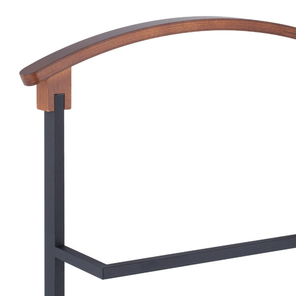 - Elegantiškas Dizainas: Juodo plieno ir rudos medienos derinys suteikia kabyklai išskirtinį ir prabangų vaizdą.