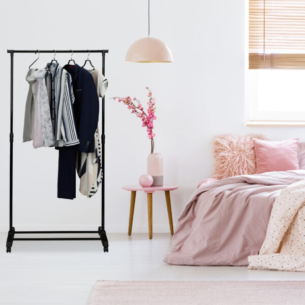 - Reguliuojamas aukštis: Lengvai pritaikykite kabyklą pagal savo poreikius, kad galėtumėte patogiai pakabinti švarkus, palaidines, marškinius ir kitus drabužius.