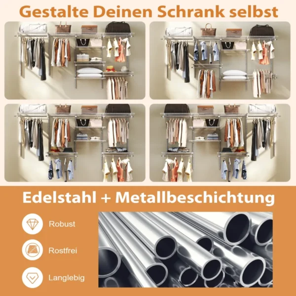 - Sudėtyje yra 7 laikymo lentynos ir 5 pakabinimo strypai.