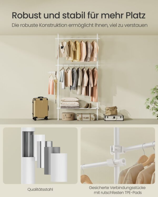 Ši drabužių kabykla, matinės baltos spalvos, yra puikus sprendimas jūsų drabužių ir aksesuarų laikymui. Jos elegantiškas dizainas puikiai dera prie bet kokio interjero.
