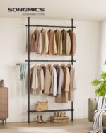 Ši drabužių kabykla yra puikus pasirinkimas jūsų drabužių ir aksesuarų laikymui. Jos matinė juoda spalva suteikia modernumo ir elegancijos jūsų interjerui.