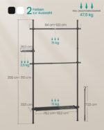 Pagaminta iš aukštos kokybės plieno ir plastiko, ši kabykla yra tvirta ir ilgaamžė. Dydis yra 33,5 x (84-123) x (208-310) cm, o svoris siekia 5,7 kg.