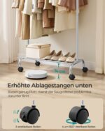 Ši drabužių kabykla, kurios matmenys yra 40 x (83-120) x 156 cm, yra puikus sprendimas jūsų drabužių ir aksesuarų laikymui. Sidabrinė spalva suteikia modernumo ir elegancijos jūsų interjerui.