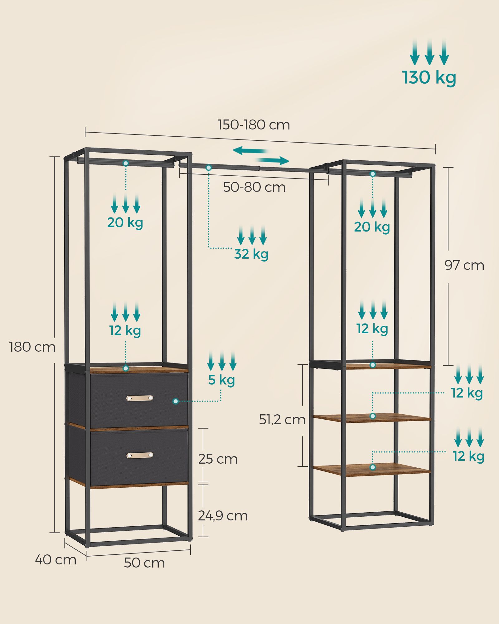 Ši drabužių kabykla yra puikus pasirinkimas tiems, kurie vertina kokybę ir stilių. Jos tvirtas plieninis rėmas ir MDF lentynos užtikrina ilgaamžiškumą, o vintažinė ruda spalva suteikia elegancijos. Nepraleiskite progos atnaujinti savo namų interjerą su šia išskirtine kabyklą!