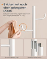 Drabužių kabyklos maksimali statinė apkrova yra 40 kg, o kiekvieno kablio – 5 kg. Tai užtikrina, kad galėsite saugiai laikyti įvairius drabužius ir aksesuarus.