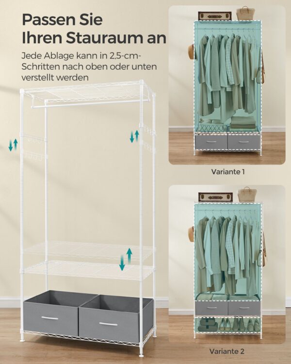 Ši drabužių kabykla, kurios spalva yra debesėlio balta-balandžio pilka, yra puikus sprendimas jūsų drabužių ir aksesuarų laikymui. Jos elegantiškas dizainas puikiai derės prie bet kokio interjero.