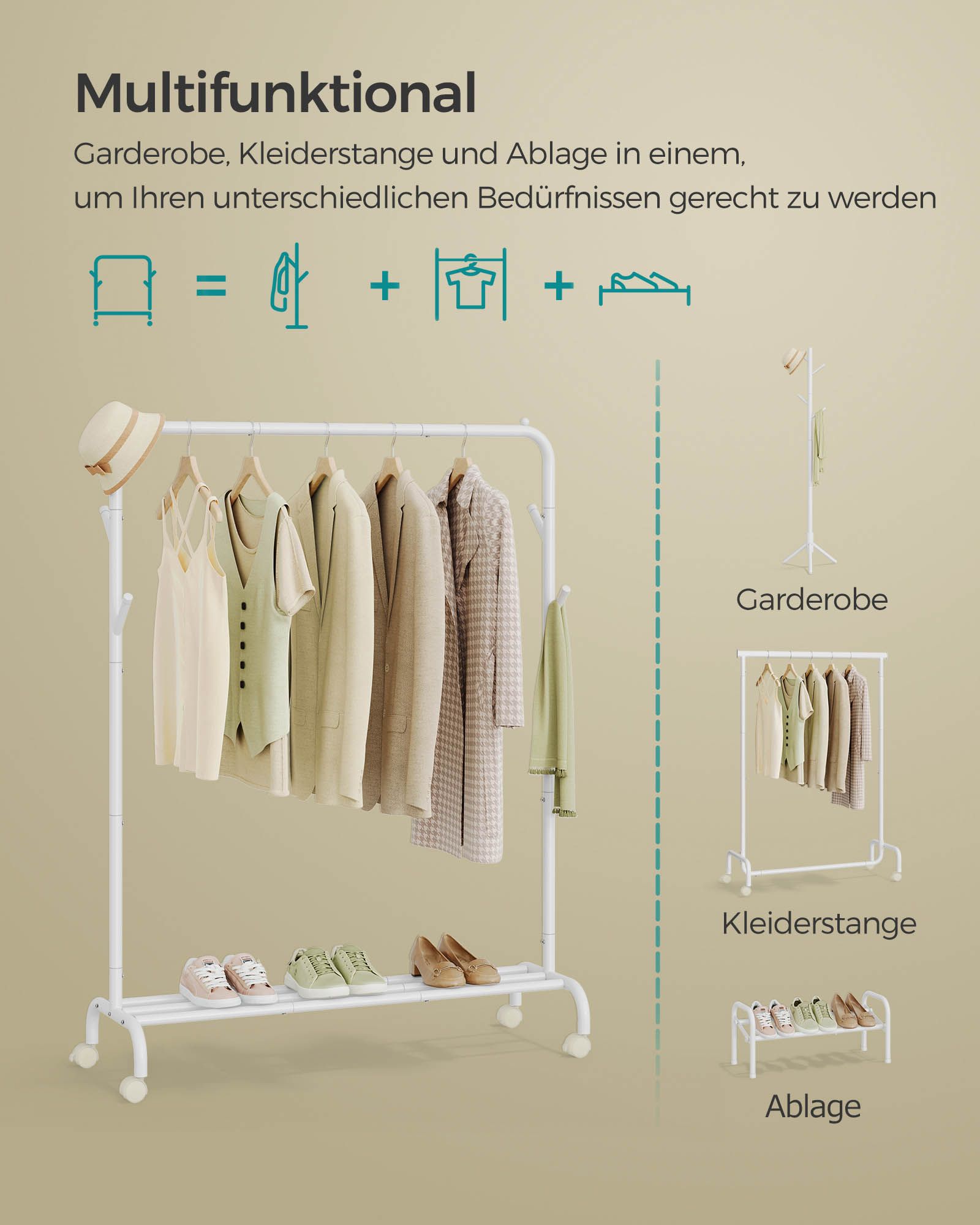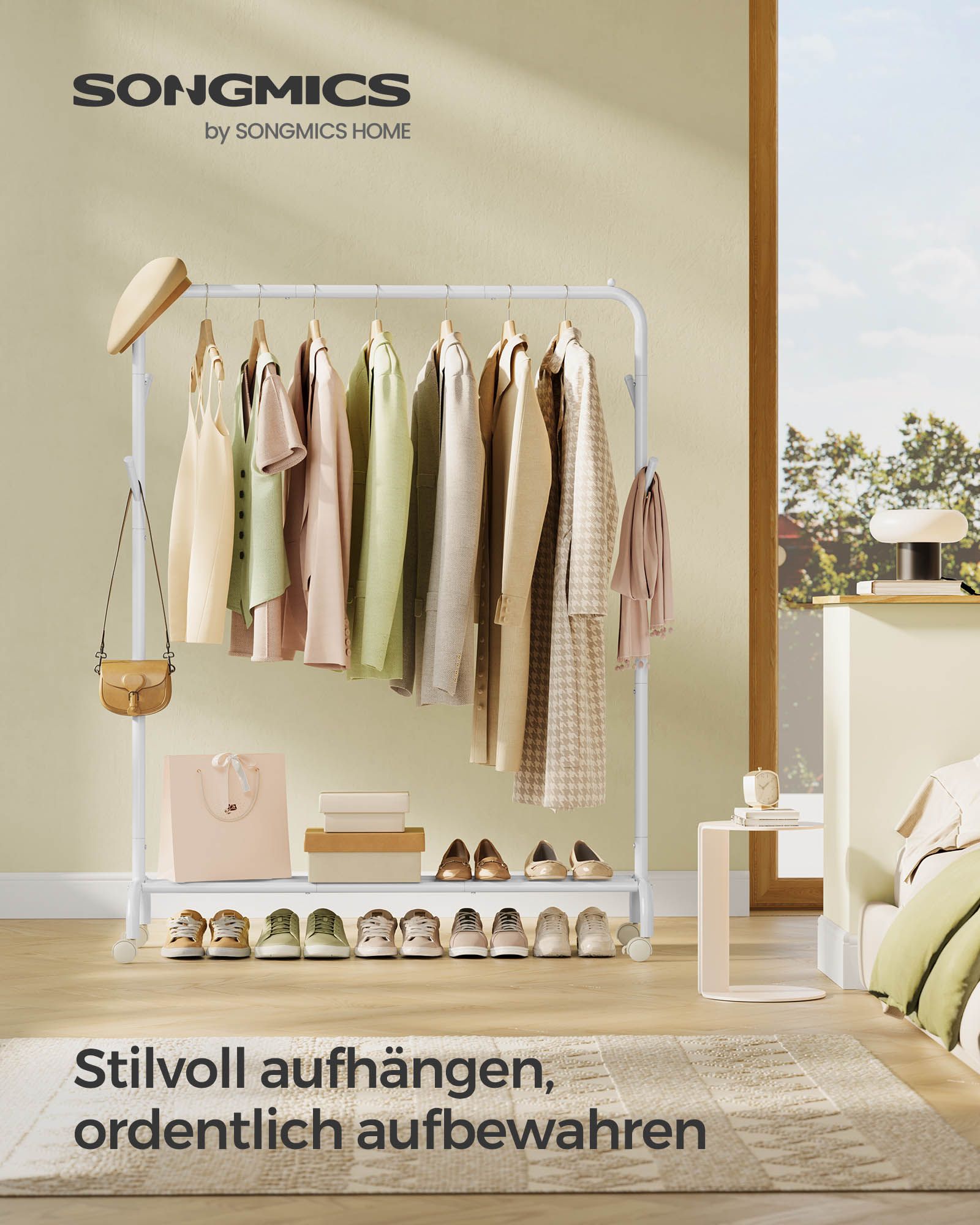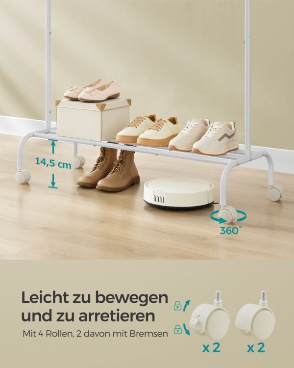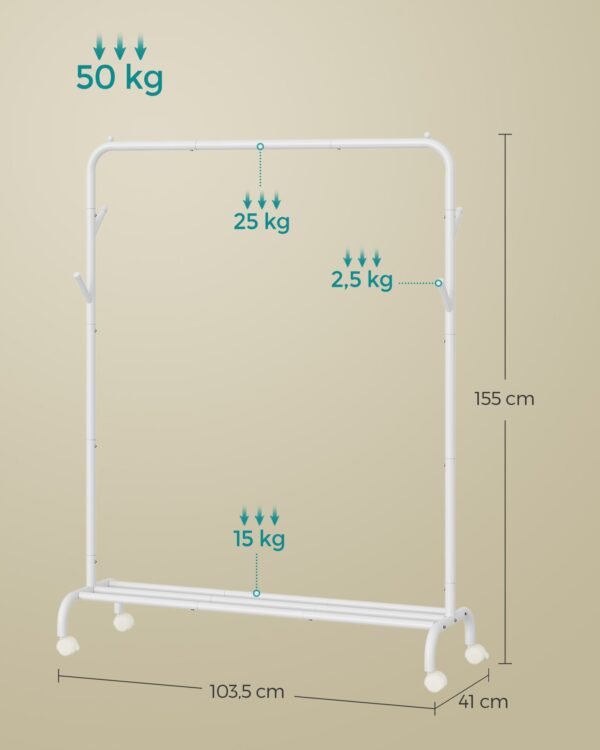 Ši drabužių kabykla, kurios matmenys yra 41 x 103,5 x 155 cm, yra puikus pasirinkimas jūsų drabužių ir aksesuarų laikymui. Jos debesies balta spalva suteikia šviesos ir elegancijos jūsų interjerui.
