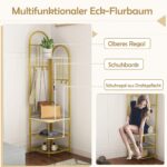 Drabužių kabykla 42x42x180cm baltos ir auksinės spalvos yra funkcionali kampinė konstrukcija, skirta optimizuoti erdvę ir užtikrinti patogų rūbų bei batų laikymą. Kompaktiško dizaino kabykla puikiai tinka prieškambariui, svetainei ar miegamajam.