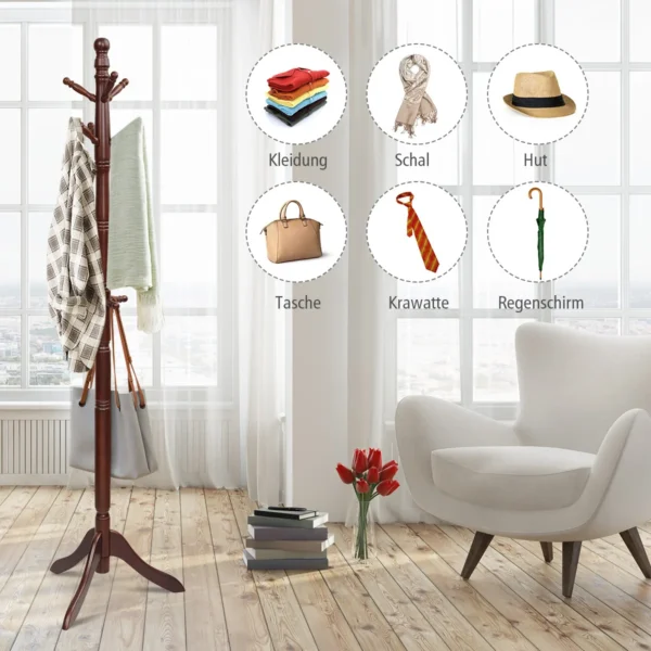 - Laisvai pastatoma kabykla su 9 kabliukais daiktų pakabinimui.