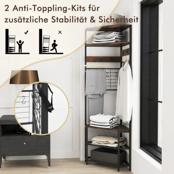 - Į komplektą įeina saugos priemonės nuo kabyklo apsivertimo, kurios prisitvirtina prie sienos.