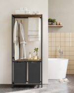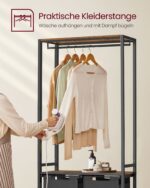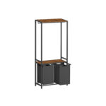 Ši drabužių kabykla, kurios matmenys yra 73 x 33 x 177 cm, yra puikus sprendimas jūsų drabužių ir aksesuarų laikymui. Vintažinė ruda ir klasikinė juoda spalva suteikia elegancijos ir stiliaus jūsų interjerui.