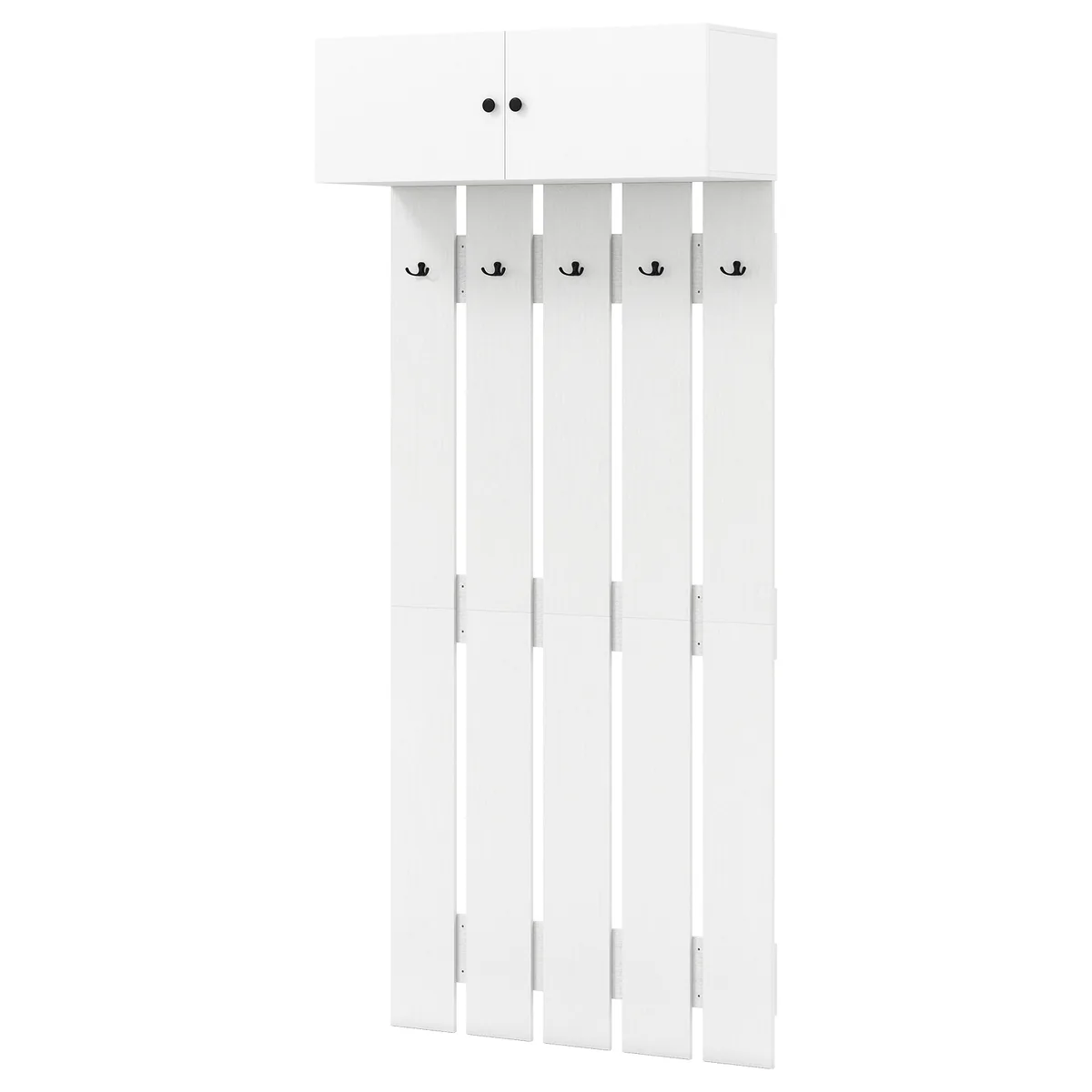 Drabužių kabykla 90x33x210cm, baltos spalvos, skirta patogiam rūbų ir kitų daiktų laikymui prie sienos. Kompaktiškas dizainas leidžia taupyti erdvę ir pritaikyti kabykla įvairiose namų patalpose.