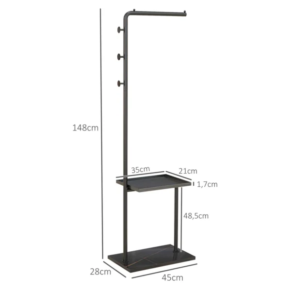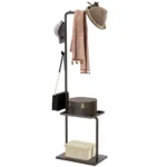 Atraskite HOMCOM paltų stovą – stilingą organizacinį pagalbininką! Dėl savo unikalaus dizaino laisvai pastatoma paltų kabykla puikiai tinka kiekviename jūsų namų kampelyje. Stabilus apvalus pagrindas užtikrina stabilumą, o drabužių kabykla, trys kabliukai ir daiktadėžė optimaliai sutvarko jūsų drabužius, kepures ir krepšius. Idealiai tinka miegamiesiems, biurams ar koridoriams – šis palto stovas įneša tvarkos ir elegancijos į jūsų kasdienį gyvenimą.