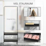 - ✔ Pakabinamas bėgelis ir dvi apatinės kabyklos lentynos išlaiko švarius, aksesuarus, batus ir krepšius tvarkingus ir tvarkingus.
