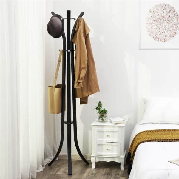 Ieškote drabužių kabyklos, kuri atitiktų įvairius reikalavimus? Ji turi būti lengvai montuojama, taupanti vietą ir stabiliai stovinti? Ši Songmics drabužių kabykla atitinka visus šiuos kriterijus! Tvirtas metalinis rėmas, nudažytas baltai, turi 9 kabliukus, kuriuose yra pakankamai vietos švarkams, paltams ir krepšiams. Skėčius taip pat galima dėti ant mažų lentynėlių viduryje. Stovas yra absoliučiai stabilus net ir pilnai pakrautas. Su Songmics drabužių kabyklos stovu galėsite džiaugtis savo pirkiniu daugelį metų.