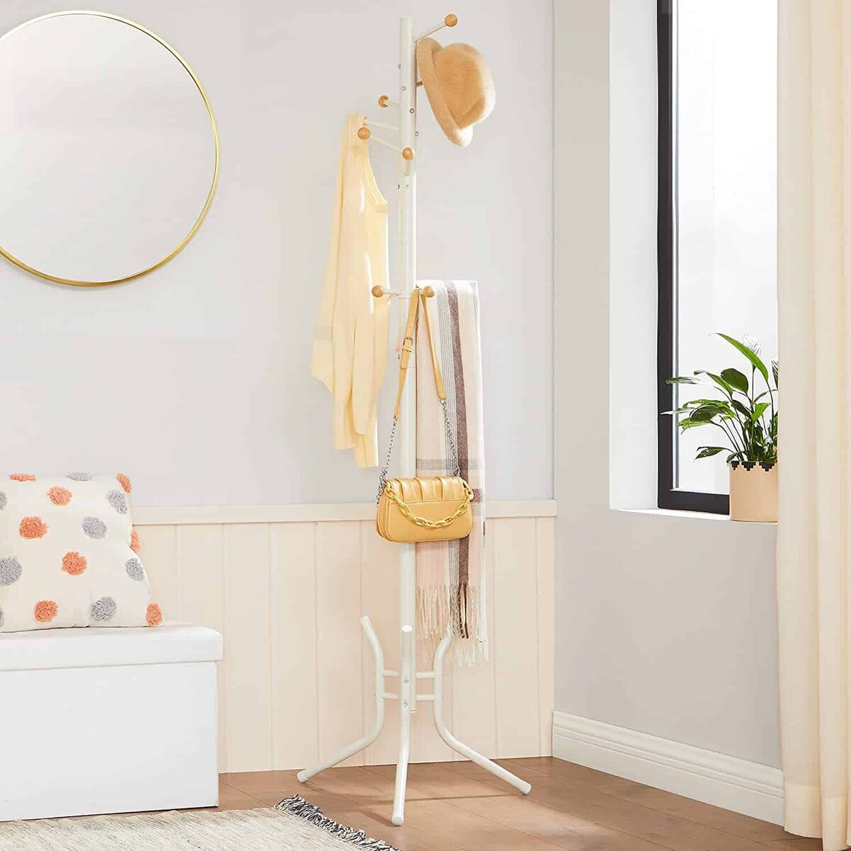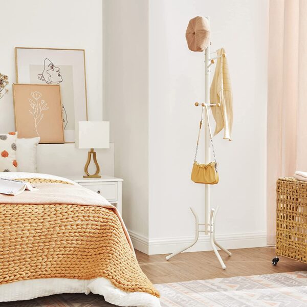 Mažiau šurmuliuojantiems rytais: eidami į darbą ar universitetą, švarkus ir paltus galite tvarkingai pasiimti iš kabyklos. Nebereikia raustis po drabužių krūvas ir nerimauti dėl raukšlių – ramiai išeikite iš namų. Tvarkingai pakabinkite drabužius, kad sukurtumėte jaukią atmosferą: erdvę taupanti drabužių kabykla yra paprastas būdas įvesti tvarką drabužių chaose. Pagaminta iš plieno, gali atlaikyti iki 30 kg – ji bus stabili ir patikima ilgus metus, laikys jūsų drabužius ir sukurs jums malonią atmosferą.