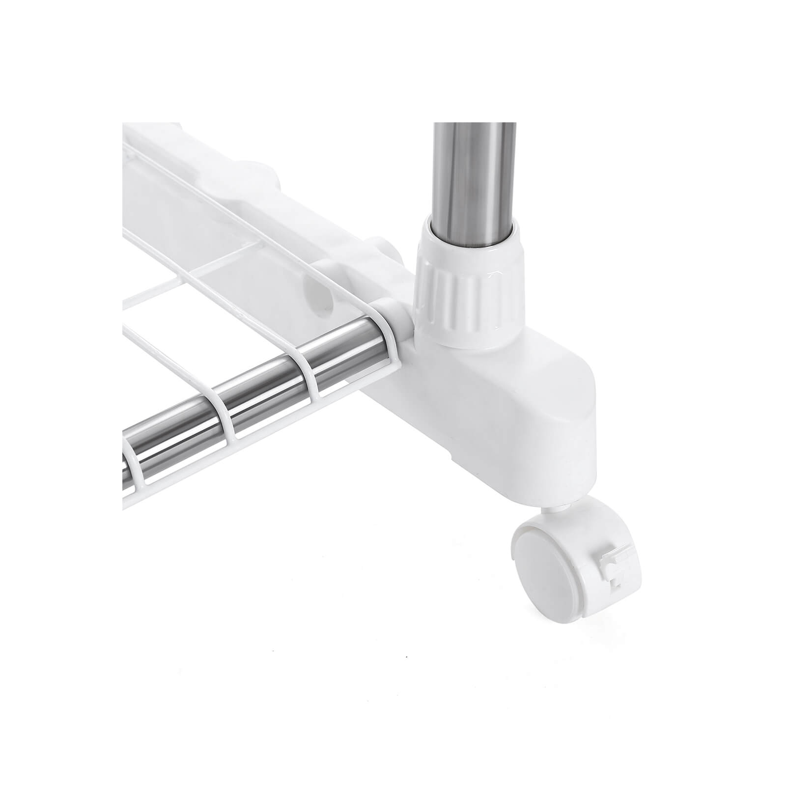 Praktiški, sklandžiai einantys ratukai užtikrina patogų judėjimą. Drabužių vežimėlį galima lengvai išardyti, todėl jį galima laikyti arba transportuoti taupant vietą. Su praktiška teleskopine funkcija gausite funkcionalų ir savo poreikiams pritaikomą pagalbininką.