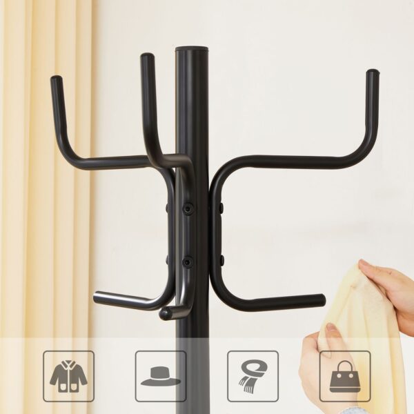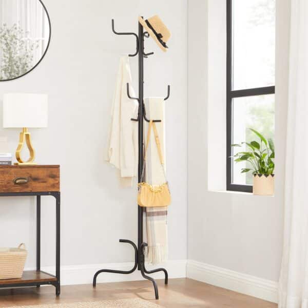 Mažiau šurmuliuojantiems rytais: eidami į darbą ar universitetą, švarkus ir paltus galite tvarkingai pasiimti iš kabyklos. Nebereikia raustis po drabužių krūvas ir nerimauti dėl raukšlių – ramiai išeikite iš namų. Tvarkingai pakabinkite drabužius, kad sukurtumėte jaukią atmosferą: erdvę taupanti drabužių kabykla yra paprastas būdas įvesti tvarką drabužių chaose. Pagaminta iš plieno, gali atlaikyti iki 30 kg – ji bus stabili ir patikima ilgus metus, laikys jūsų drabužius ir sukurs jums malonią atmosferą.