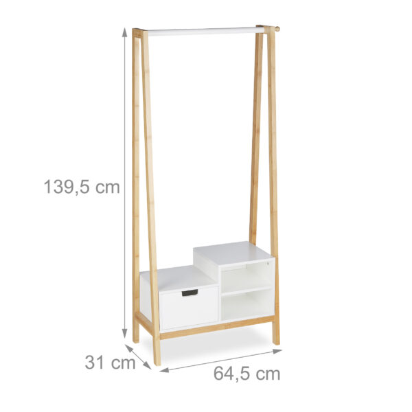 Ieškote praktiško ir stilingo sprendimo savo drabužiams laikyti? Mūsų drabužių kabykla su lentyna yra puikus pasirinkimas, kuris ne tik padės tvarkingai laikyti drabužius, bet ir taps elegantišku interjero akcentu. Ši kabykla, pasižyminti šviesiai rudos ir baltos spalvų deriniu, puikiai įsilies į bet kokį interjerą.