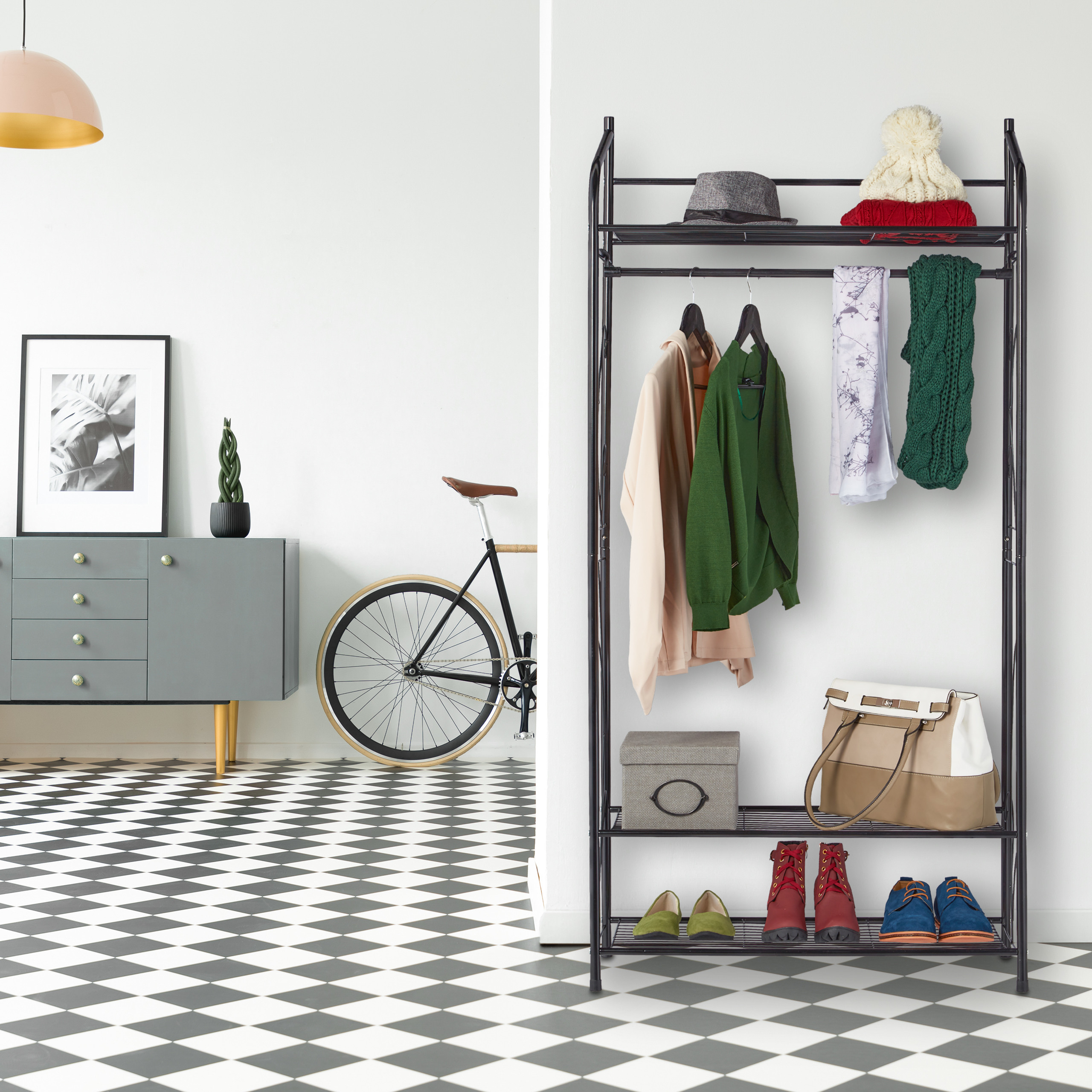 Praktiškumas: Viršutinis lygis idealiai tinka skrybėlėms, šalikams ar kitoms smulkmenoms.