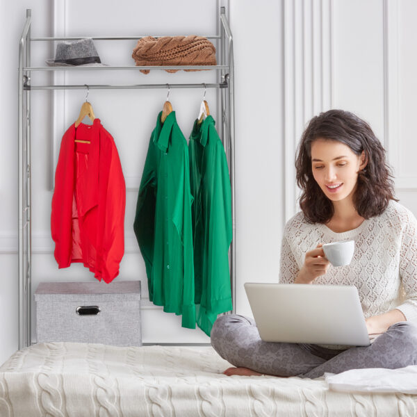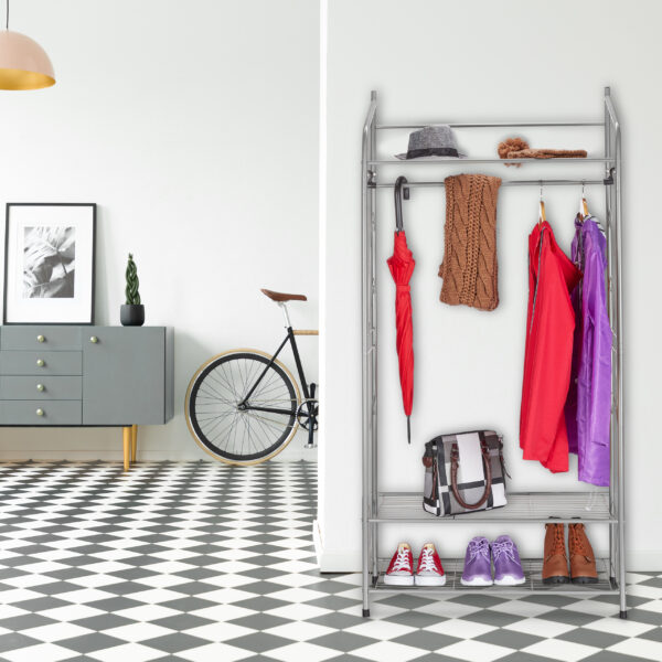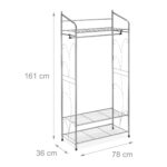 Drabužių kabykla su lentynomis 161x78x36cm, sidabrinės spalvos