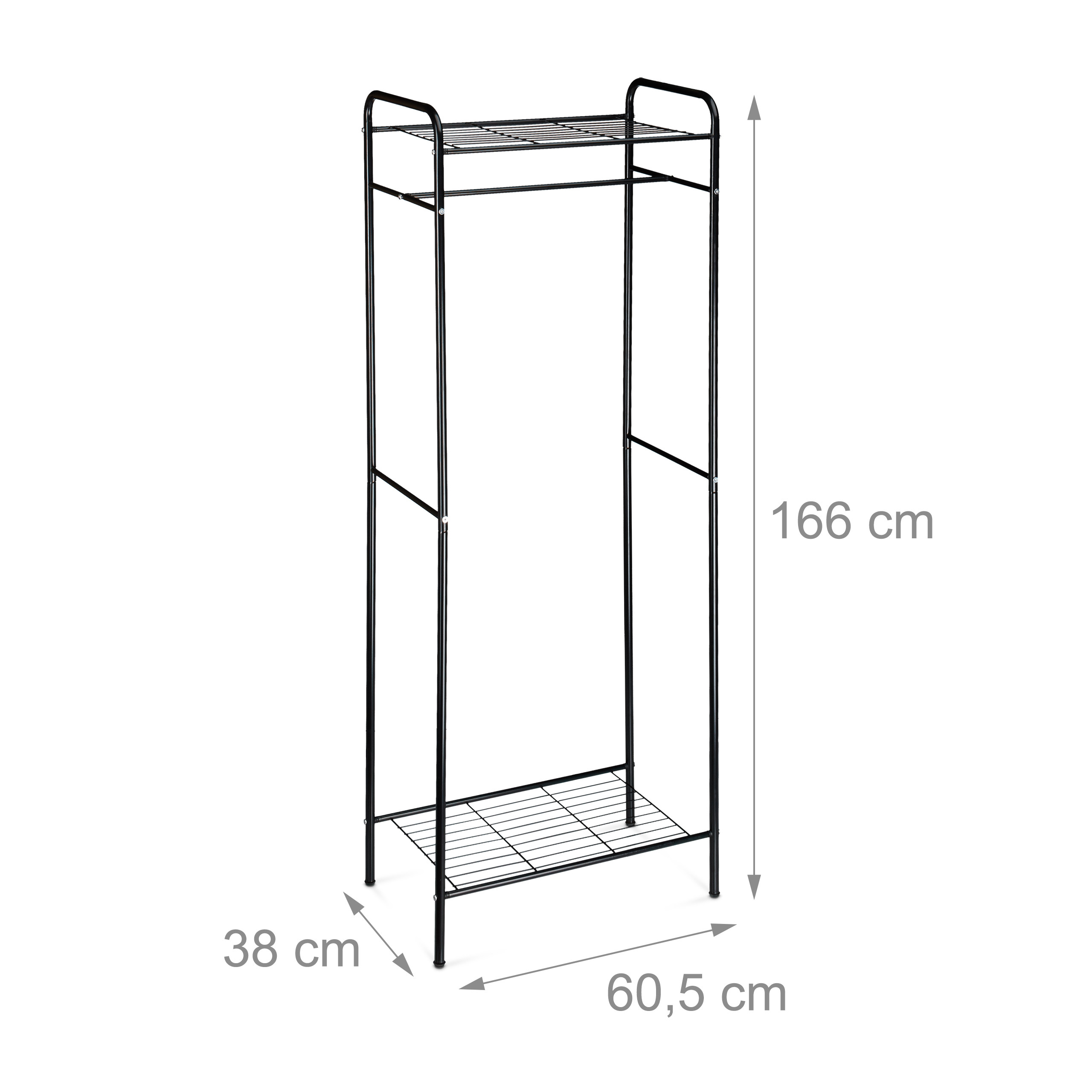 Drabužių kabykla su lentynomis 166×60,5x38cm, juodos spalvos