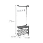 Drabužių kabykla su lentynomis ir suoliuku 173x64x30cm, juodos/pilkos spalvos