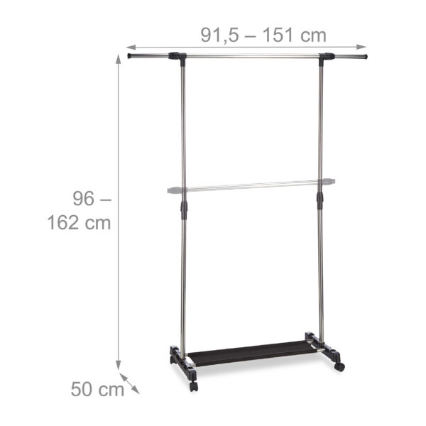 Drabužių kabykla su ratukais 162x151x50cm – Sidabrinės/Juodos Spalvos