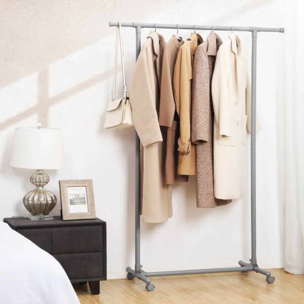 Kova dėl daugiau vietos jūsų spintoje baigėsi! Ar jūsų spinta plyšta? O gal iš viso neturite spintos? Tada pasilepinkite šia drabužių kabykla su ratukais, pilkos spalvos, kad tvarkingai pakabintumėte striukes, paltus ir kitus drabužius.