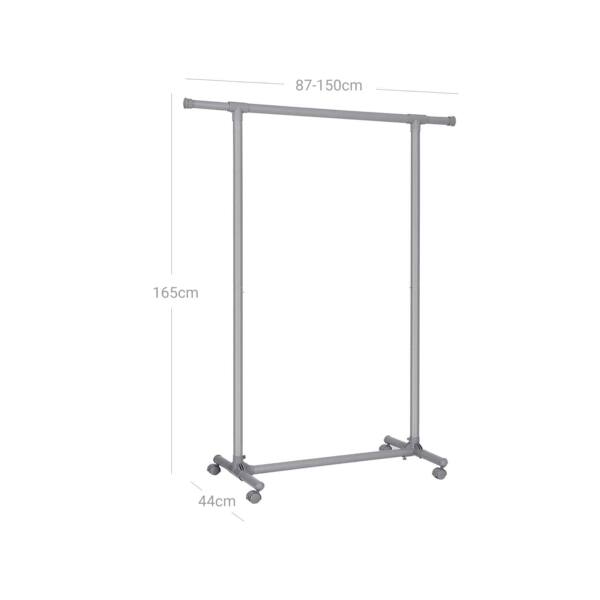 Beje, drabužių kabyklą galima pailginti iki 150 cm, kad jūsų drabužiams atsirastų dar daugiau vietos.