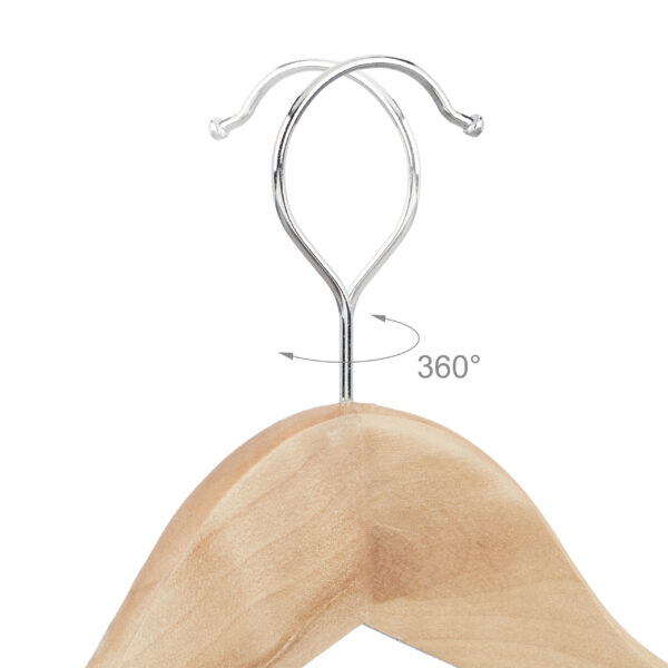 - Aukštos kokybės medžiagos: Pagamintos iš lakuoto klevo medienos, šios pakabos pasižymi natūraliai gražiais grūdeliais, kurie suteikia papildomą akcentą jūsų drabužinei.