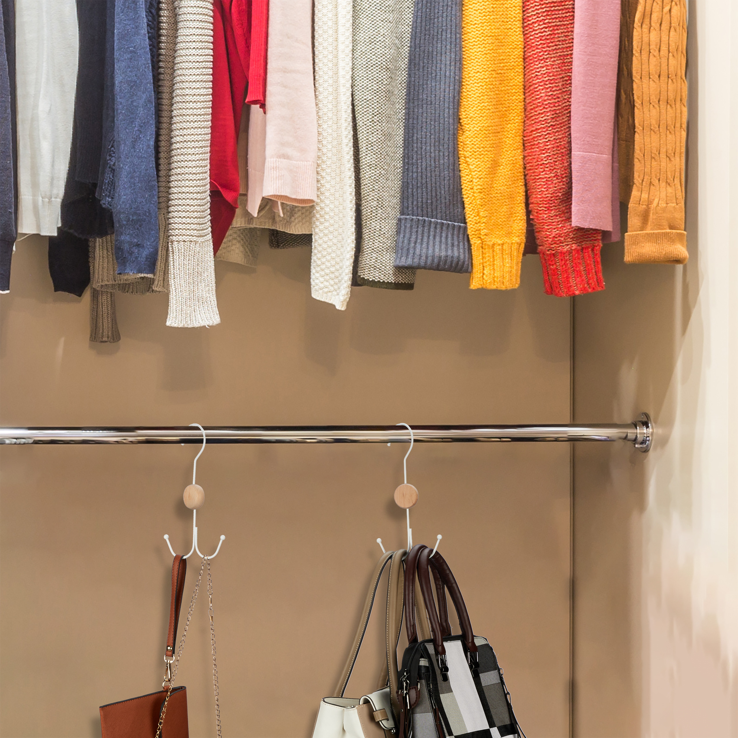 - Praktiškumas: Naudodami šias pakabas, galėsite tvarkingai pakabinti įvairius priedus, tokius kaip diržai, kaklaraiščiai, rankinės ar šalikai, taip sutaupydami vietos spintoje.