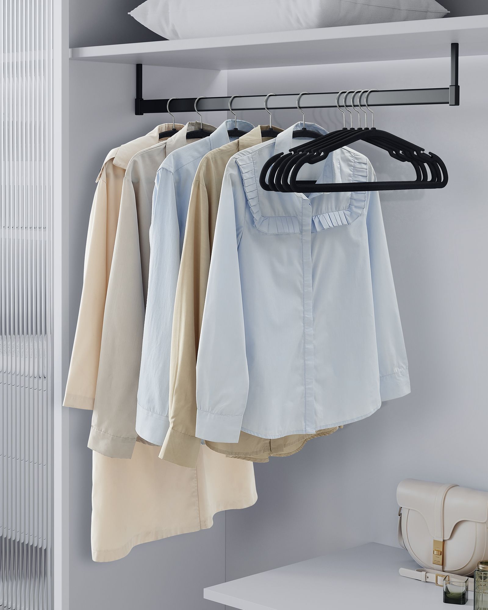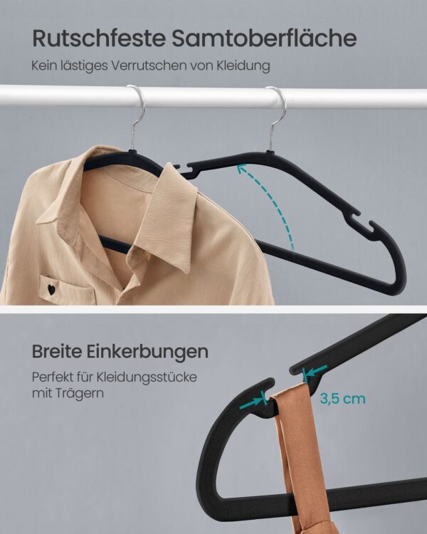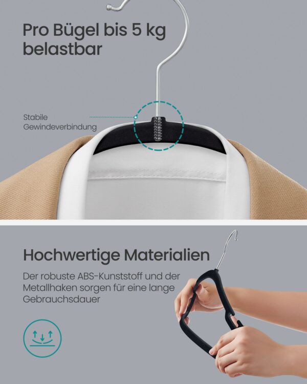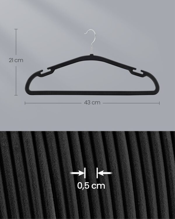 Šios pakabos yra pagamintos iš aukštos kokybės aksomo, kuris neleidžia drabužiams slysti, o tvirtas ABS plastikas ir metalinis kabliukas užtikrina ilgaamžiškumą ir patikimumą. Su šiuo 50 vienetų rinkiniu jūsų drabužiai visada bus tvarkingi ir lengvai pasiekiami.