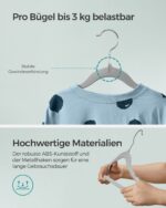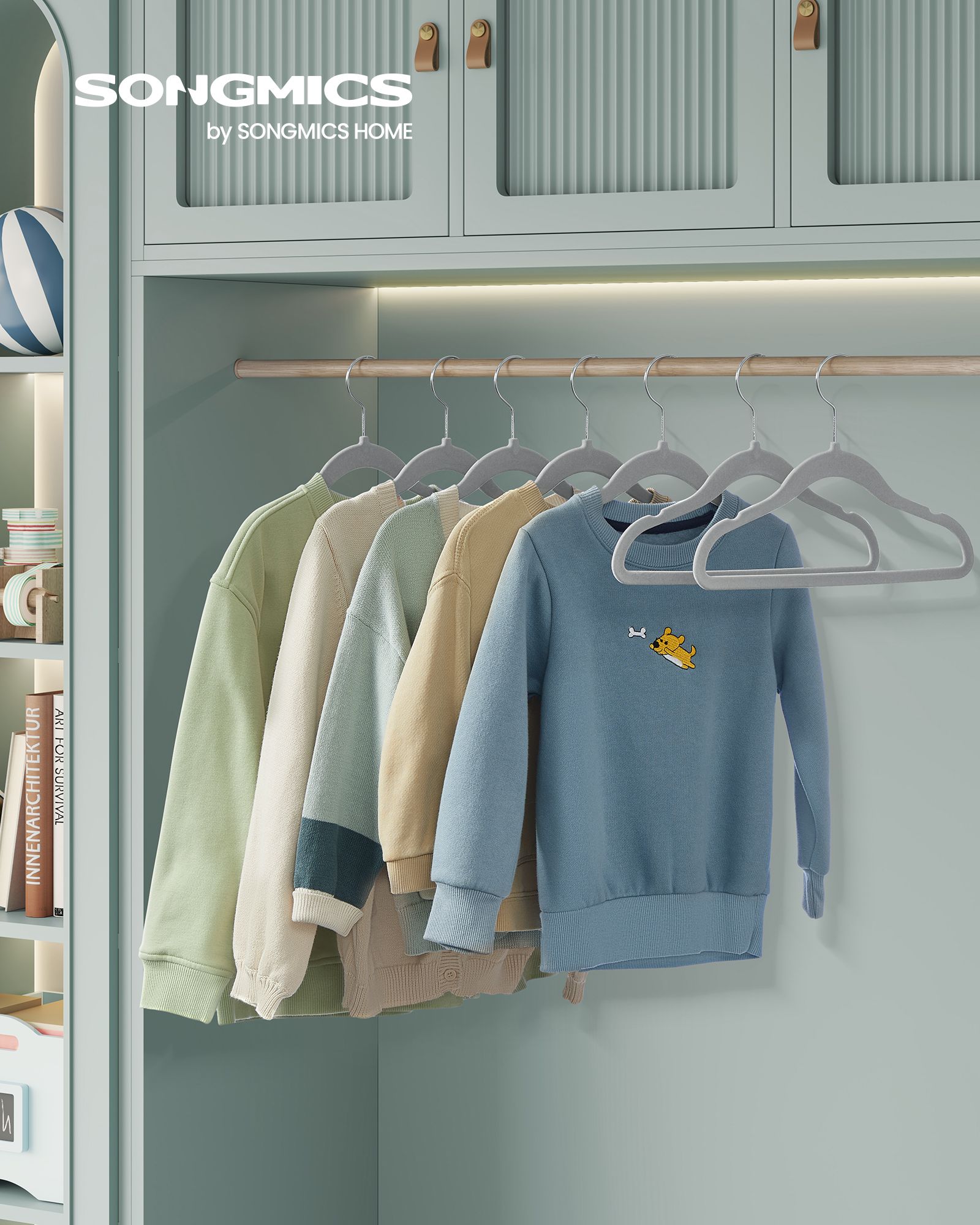 Šios pakabos yra pagamintos iš aukštos kokybės ABS plastiko, padengtos švelniu aksomu, kuris apsaugo jūsų drabužius nuo slydimo ir raukšlių. Metalinis kabliukas užtikrina tvirtumą ir ilgaamžiškumą, todėl galite būti tikri, kad jūsų drabužiai bus saugiai laikomi.