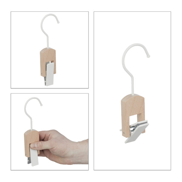 Ant segtukų kabliukų galite pakabinti batus, kelnes, kojines ar sijonus.