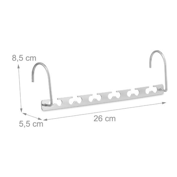 Ar Jūsų drabužių spinta jau lūžta nuo siūlių, bet nenorite išsiskirti su jokiu drabužiu? Šis praktiškas 6 vietą taupančių pakabų rinkinys yra būtent tai, ko Jums reikia! Sidabrinės spalvos pakabos ne tik suteikia elegancijos, bet ir padeda efektyviai organizuoti Jūsų drabužių kolekciją.