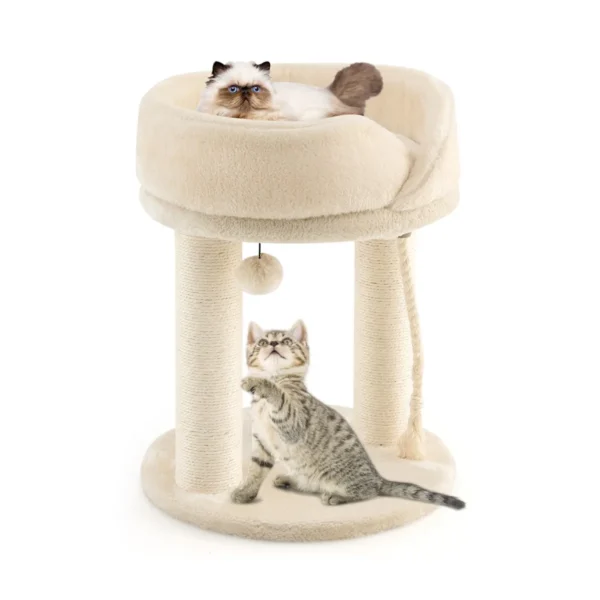 Draskyklė 43x43x53cm, smėlio spalvos, yra praktiška ir patvari vieta jūsų katei žaisti, leisti laiką bei pravesti nagus. Šis kačių medis pagamintas iš natūralios sizalio medžiagos ir minkšto pliušinio audinio, todėl atitinka katėms skirtų žaidimo priemonių poreikius.