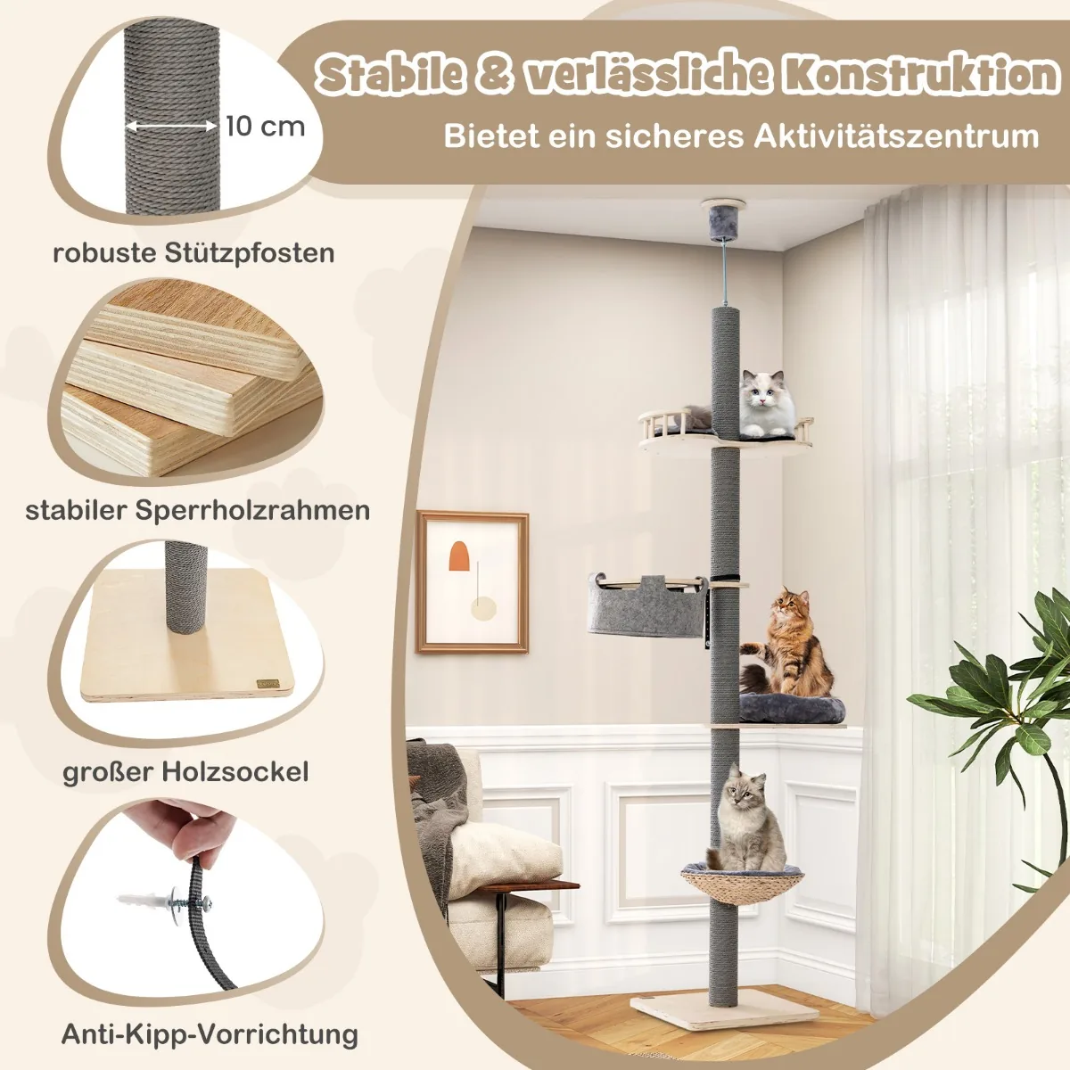 Draskyklė 48×271 cm, tamsiai pilkos spalvos – praktiškas ir kompaktiškas sprendimas jūsų katėms. Reguliuojamo aukščio kačių medis nuo grindų iki lubų suteikia daug vietos laipioti, žaisti ir ilsėtis net ir ribotoje erdvėje.