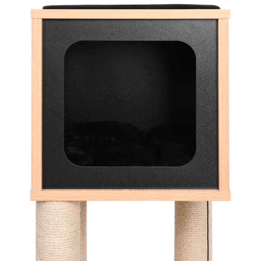 Su šia gražia draskykle katėms, jūsų katės galės draskyti, tupėti, slėptis, laipioti ir ilsėtis, kiek tik jų širdis geidžia. Ji tiks bet kuriame interjere. Jūsų keturkojai galės pasigaląsti savo nagus į draskyklės stulpus iš džiuto, – tai bus saugus sprendimas neribojant jų instinkto draskyti. Jiems taip pat patiks vytis vienas kitą šokinėjant aukštyn bei žemyn ant šios žaismingos draskyklės. Kai jūsų mažieji draugai nebenorės žaisti, jie galės ilsėtis ant aukštesniųjų platformų, taip viską geriau matydami. Ant viršutinės plokštės esantis kilimėlis iš sizalio gali būti nuimtas. Mūsų baldas katėms turi jaukų namelį, kuriame jūsų katė galės nusnūsti. Šio bokšto katėms pagalvėlė yra plaunama ir nuimama. Be to, šios draskyklės katėms pagrindas yra tvirtas ir stabilus. Šią draskyklę katėms lengva surinkti.