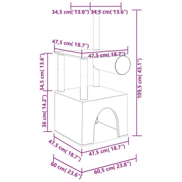 Su šia viskas viename draskykle katėms užtikrinkite, kad jūsų mylimos katės bus visuomet užimtos! Viskas viename bokštas katėms: kelių aukštų baldas katėms turi namelį, tunelį ir platformas, tad jūsų katės turės puikią vietą laipioti, tupėti, draskyti, slėptis bei pailsėti.Minkšta pliušo medžiaga: itin storas ir minkštas pliušas yra gerai vėdinamas, atsparus įbrėžimams, itin patogus ir šiltas.Stovai iš natūralaus sizalio: draskyklės katėms stovai iš elastingo ir tvirto natūralaus sizalio puikiai tiks jūsų mylimoms katėms patenkinti savo instinktus draskyti, taip užtikrinant, kad jos nedraskys jūsų baldų.