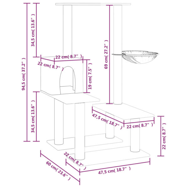 Su šia viskas viename draskykle katėms užtikrinkite, kad jūsų mylimos katės bus visuomet užimtos! Viskas viename bokštas katėms: kelių aukštų baldas katėms turi 1 namelį, 1 hamaką ir platformas, tad jūsų katės turės puikią vietą laipioti, tupėti, draskyti, slėptis bei pailsėti.Minkšta pliušo medžiaga: itin storas ir minkštas pliušas yra gerai vėdinamas, atsparus įbrėžimams, itin patogus ir šiltas.Stovai iš natūralaus sizalio: draskyklės katėms stovai iš elastingo ir tvirto natūralaus sizalio puikiai tiks jūsų mylimoms katėms patenkinti savo instinktus draskyti, taip užtikrinant, kad jos nedraskys jūsų baldų. Pastaba:Siekiant užtikrinti lengvą surinkimą, kiekvienas gaminys pristatomas su surinkimo instrukcijomis dėžėje.
