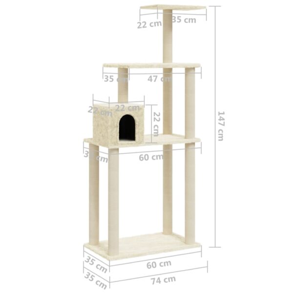 Draskyklė katėms su stovais iš sizalio, kreminės spalvos, 147cm