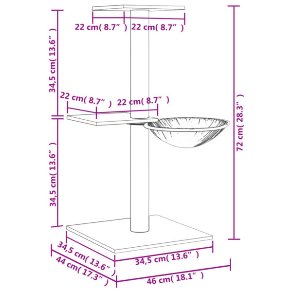 Su šia viskas viename draskykle katėms užtikrinkite, kad jūsų mylimos katės bus visuomet užimtos! Viskas viename bokštas katėms: kelių aukštų baldas katėms turi krepšį ir platformas, tad jūsų katės turės puikią vietą laipioti, tupėti, draskyti, slėptis bei pailsėti.Minkšta pliušo medžiaga: itin storas ir minkštas pliušas yra gerai vėdinamas, atsparus įbrėžimams, itin patogus ir šiltas.Stovai iš natūralaus sizalio: draskyklės katėms stovai iš elastingo ir tvirto natūralaus sizalio puikiai tiks jūsų mylimoms katėms patenkinti savo instinktus draskyti, taip užtikrinant, kad jos nedraskys jūsų baldų.