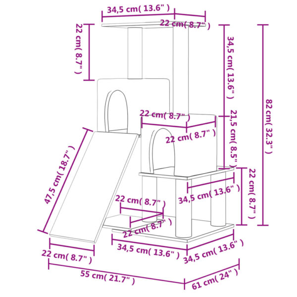 Su šia viskas viename draskykle katėms užtikrinkite, kad jūsų mylimos katės bus visuomet užimtos! Viskas viename bokštas katėms: kelių aukštų baldas katėms turi 2 namelius, kopėčias ir platformas, tad jūsų katės turės puikią vietą laipioti, tupėti, draskyti, slėptis bei pailsėti.Minkšta pliušo medžiaga: itin storas ir minkštas pliušas yra gerai vėdinamas, atsparus įbrėžimams, itin patogus ir šiltas.Stovai iš natūralaus sizalio: draskyklės katėms stovai iš elastingo ir tvirto natūralaus sizalio puikiai tiks jūsų mylimoms katėms patenkinti savo instinktus draskyti, taip užtikrinant, kad jos nedraskys jūsų baldų.