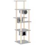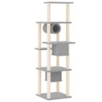 Draskyklė katėms su stovais iš sizalio, šviesiai pilka, 169cm