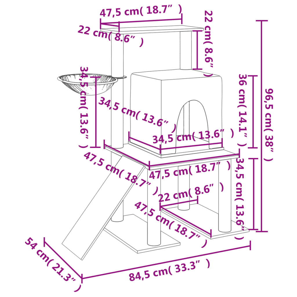 Su šia viskas viename draskykle katėms užtikrinkite, kad jūsų mylimos katės bus visuomet užimtos! Viskas viename bokštas katėms: kelių aukštų baldas katėms turi namelį, kopėčias, krepšį ir platformą, tad jūsų katės turės puikią vietą laipioti, tupėti, draskyti, slėptis bei pailsėti.Minkšta pliušo medžiaga: itin storas ir minkštas pliušas yra gerai vėdinamas, atsparus įbrėžimams, itin patogus ir šiltas.Stovai iš natūralaus sizalio: draskyklės katėms stovai iš elastingo ir tvirto natūralaus sizalio puikiai tiks jūsų mylimoms katėms patenkinti savo instinktus draskyti, taip užtikrinant, kad jos nedraskys jūsų baldų.