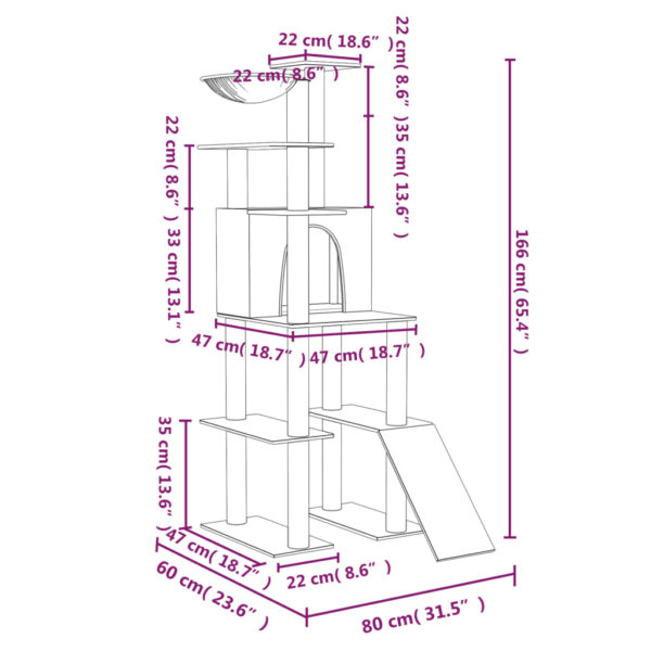 Su šia viskas viename draskykle katėms užtikrinkite, kad jūsų mylimos katės bus visuomet užimtos! Viskas viename bokštas katėms: kelių aukštų baldas katėms turi 1 namelį, 1 hamaką, 1 kopėčias ir platformas, tad jūsų katės turės puikią vietą laipioti, tupėti, draskyti, slėptis bei pailsėti.Minkšta pliušo medžiaga: itin storas ir minkštas pliušas yra gerai vėdinamas, atsparus įbrėžimams, itin patogus ir šiltas.Stovai iš natūralaus sizalio: draskyklės katėms stovai iš elastingo ir tvirto natūralaus sizalio puikiai tiks jūsų mylimoms katėms patenkinti savo instinktus draskyti, taip užtikrinant, kad jos nedraskys jūsų baldų. Pastaba:Siekiant užtikrinti lengvą surinkimą, kiekvienas gaminys pristatomas su surinkimo instrukcijomis dėžėje.