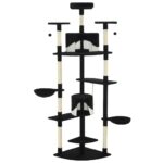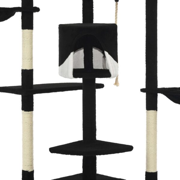 Draskyklė katėms su stovu iš sizalio, 203cm, juoda ir balta