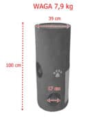 Stulpelis / Vamzdis / Bokštas / Katės guolis ; Braižymo stulpelis dažniausiai dengiamas pliušiu – itin minkšta ir malonia medžiaga.; Jei jūsų katė mėgsta trintis į baldus, jai tikrai patiks mūsų draskymasis, pritaikytas būtent tokioms katėms. Be minkšto paviršiaus, jūsų katė taip pat turės kur patenkinti natūralų poreikį kasytis, nes mūsų draskymasis turi įsiūtą sizalį, kuris puikiai tiks, jei reikės kasytis. Vamzdžio apdaila ir vidus pagamintas iš pliušinio, todėl katei nereikia pagrindo, pvz., antklodės. ;Vamzdis yra puikus sprendimas katėms, kurios taip pat mėgsta slėptis. Jūsų augintinis galės likti vamzdelio viduje ir ant vamzdelio. Viršutinėje lango dalyje yra kutas ant virvelės, kuris bus puiki atrakcija jūsų katei. Vamzdis yra gražios universalios spalvos ir tiks daugumoje namų kambarių. Pateikdami savo augintiniui mūsų draskyklę, suteikiate jam savo kampelį savo namuose. ; ; Mūsų gaminys tikrai suteiks jums daug valandų, praleistų žaidžiant ir ilsintis jūsų katei. ; ; Techniniai duomenys: Medžiaga: MDF plokštė, pliušas, sizalis Aukštis: 100cm Plotis: 39cm Lango plotis: 17cm Vamzdžio svoris: 7,9kg Lygių skaičius: 4 ;;; ;;;;;;; ;;;;;;;;;;;;;;;;;;;;;;;;;; ;;;;;;;;;;;;;;;;;;;;;;;;;; ; ; ; ; ; ; ;;;;;; Spalva: pilka ; ; ; Ypatingos savybės: ;• Lova viršutinėje vamzdelio dalyje • Pliušu dengtas vamzdelis • Sizalis įbrėžimams • Žaislas; pomponas lange ;• Aukšta medžiagų ir darbo kokybė •Daug galimybių žaisti, krapštytis ir ilsėtis ; ; ; Įvairių spalvų ir dydžių variantai kituose aukcionuose ; Pakuotės matmenys: 40x40x102cm