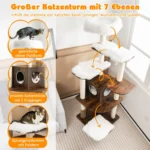 - Katės gali lipti ir šokinėti, naudojant 6 patogiai išdėstytas platformas.